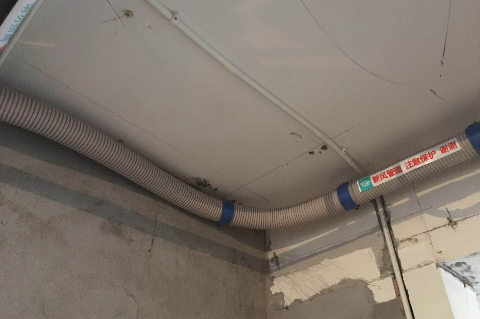 本案采用全屋地暖系統(tǒng)及全屋新風系統(tǒng)。地暖部分選用了進口PEX阻氧管材,可減少水垢滋生,保持系統(tǒng)長期穩(wěn)定運行。新風系統(tǒng)采用優(yōu)質PE管材,柔性材料一管到底,沒有接頭。