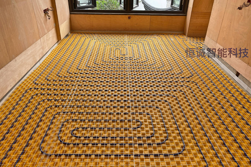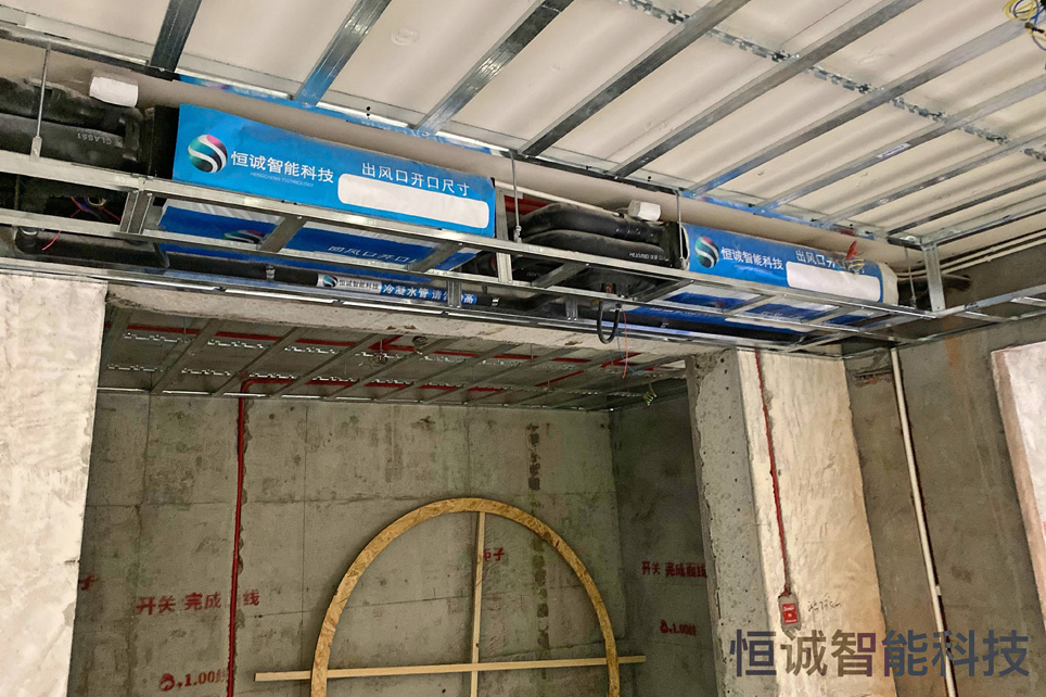 本案采用地源熱泵系統。開發商打好地埋井交付。我司提供了室內部分的設備和施工。制冷采用風機盤管,制熱采用地暖盤管。