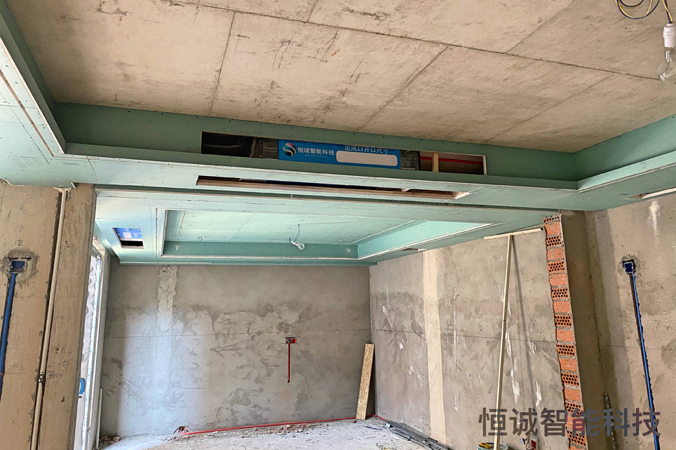本案采用全屋暖氣片和全屋新風系統。德國威能鍋爐和鋼制板式暖氣片組成采暖系統,衛生間采用毛巾架,采暖帶烘干。同時提供生活熱水功能。新風系統采用松下主機,配合PE管和分風箱技術,減少過梁開孔大小。