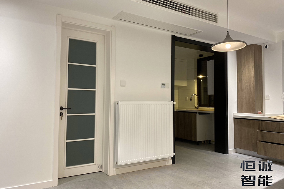 隨著精裝修交付的樓盤越來越多,很多業主也習慣不用操心新房裝修的事情。但是很多樓盤交付的時候沒有配套空調和地暖,本案例就是如此。空調可以安裝壁掛柜機,開發商有預留機位電源等,但是地暖肯定是無法實現了。對于習慣了集中供暖的業主來說是很不習慣蘇南地區濕冷的冬季。明裝暖氣系統很好的解決了上述問題。專為精裝修不帶地暖,或者老房沒有安裝的地暖的業主設計??赏瑫r提供暖氣和生活熱水。每個房間的暖氣片可獨立開關。加裝自動溫包和智能模塊后可遠程控制。
