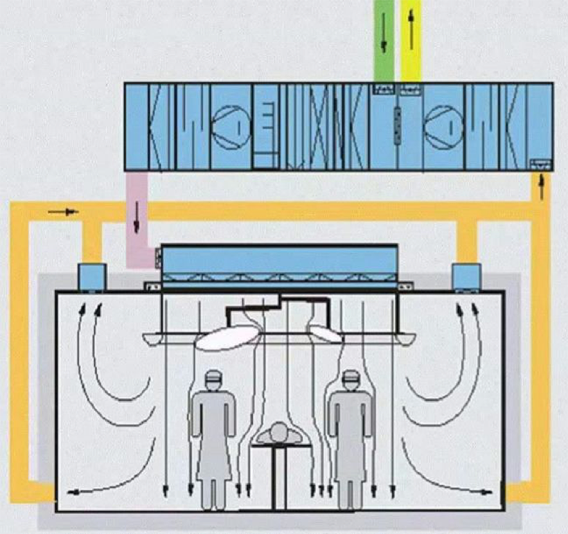 潔凈手術(shù)室在疫情期間根據(jù)需要可迅速轉(zhuǎn)換成全新風(fēng)全排風(fēng)的負(fù)壓手術(shù)室。