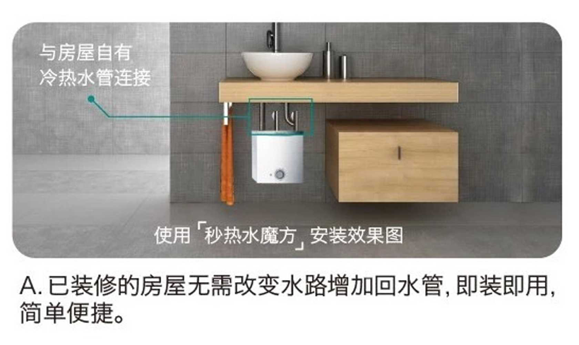 用戶可根據(jù)各自家庭不同的用水需求和排管,靈活選擇。比如主衛(wèi)、客衛(wèi)并聯(lián)的房屋則可以根據(jù)用戶的用水習(xí)慣設(shè)置一臺或兩臺水魔方,以提高熱循環(huán)使用率,而對于主衛(wèi)、客衛(wèi)串聯(lián)的房屋則只需一臺水魔方即可實現(xiàn)全屋秒熱。
